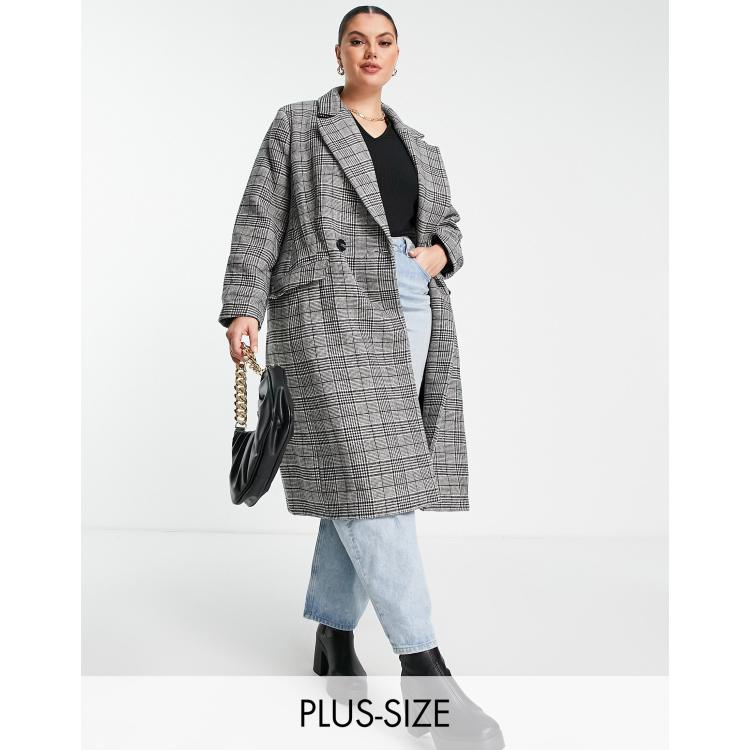 Forever New Curve Eleganter Mantel In Grau Kariert Asos